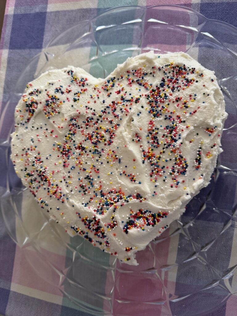 My insight was followed by another body wisdom from haircutting experience: ‘you can always go shorter.’ So I began with the smaller liquid measure (1/2 cup) and observed the batter was not nearly thin enough. Problem solved. I added another 1/2 cup of Cold Black Coffee, popped the heart-shaped pans in the oven, set the timer to 35 mins, and edited my recipe before I put it away, while I had it in my hand!