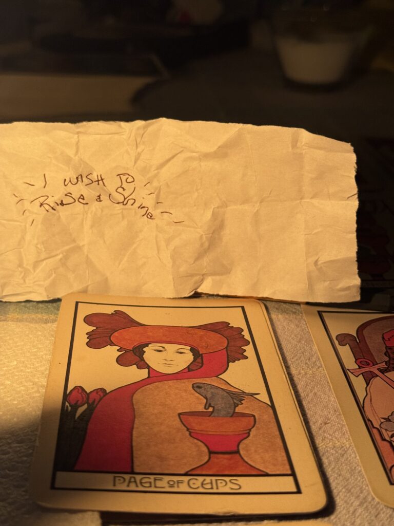 Before unfolding and reading Wish Thirteen on January 2, I drew cards for insight: “How will my wishes manifest in 2026?” Less a chronological and more a procedural spread, the 12 cards showed me how wishes are about habits; fulfilling them is a labor of love. New habits comport changing behaviors inflecting proportions of action, thought, mood, trajectory, embodiment. Manifesting wishes requires an agreement with self to feel and respond to the changes they offer. Building new patterns of life can mean letting go of old habits. Some die hard. Despite grief, releasing, untangling, parcing, retooling ‘bad habits’ can be heartbreaking, require will power, and promise joy. Ultimately shining on habits makes room for wishes to come true.